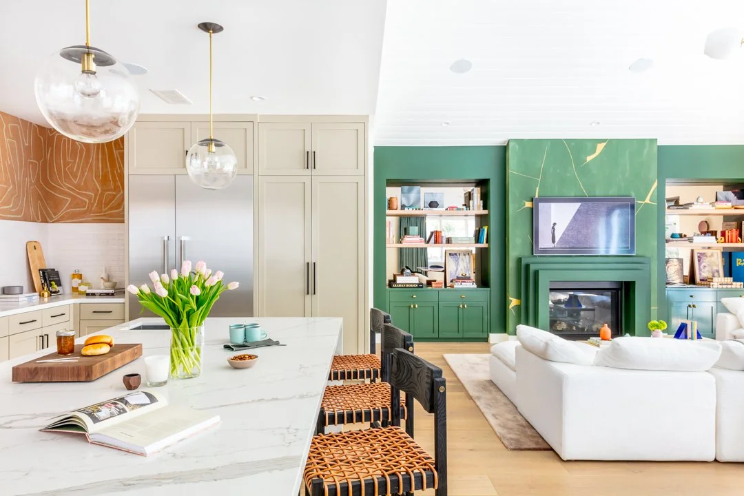 Tucked high up on a Hollywood hillside, this new construction board and batten-clad family retreat is both relaxed and refined. The young bi-coastal owners have built an impressive art collection and exude style and creativity to match their Los Angeles abode.